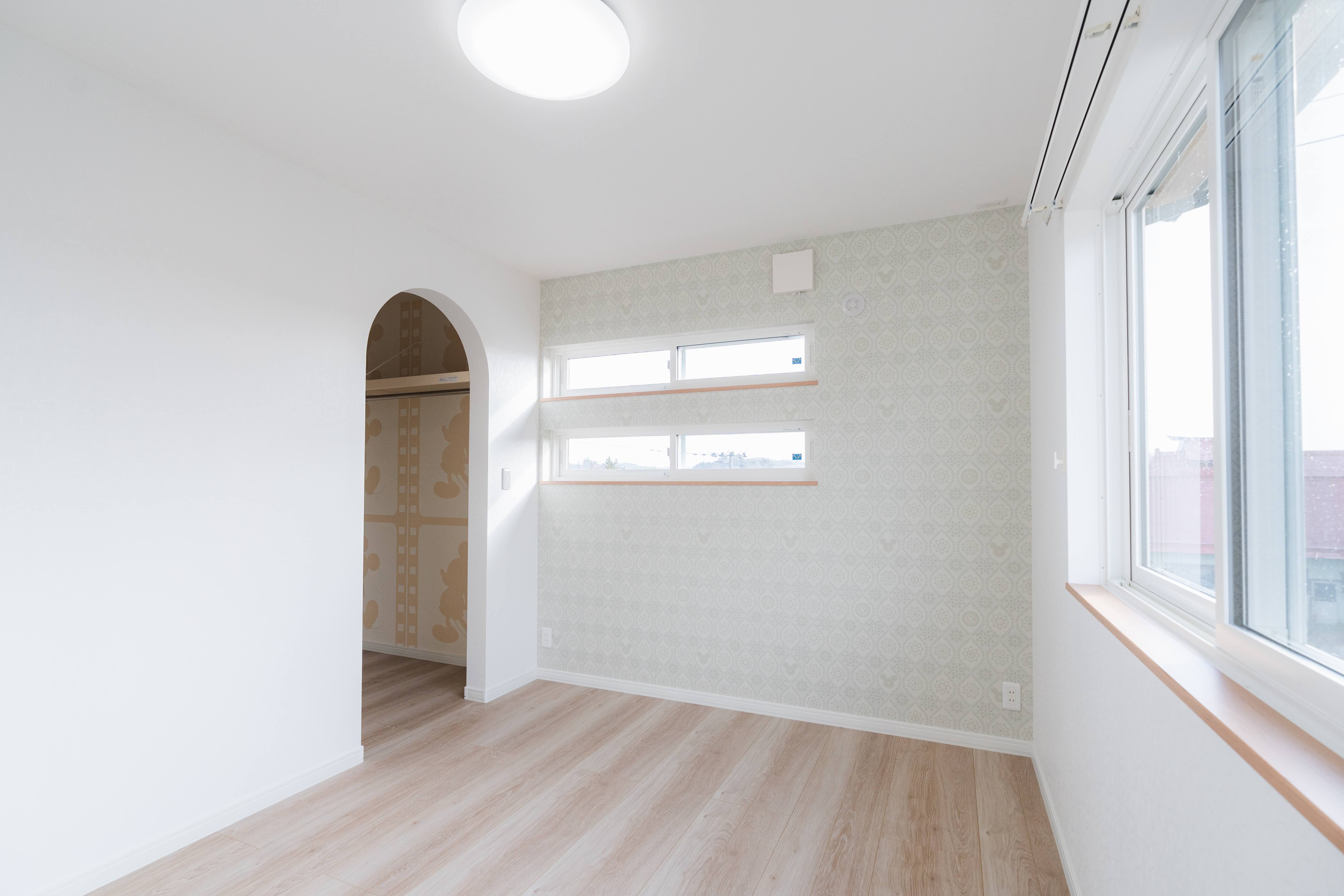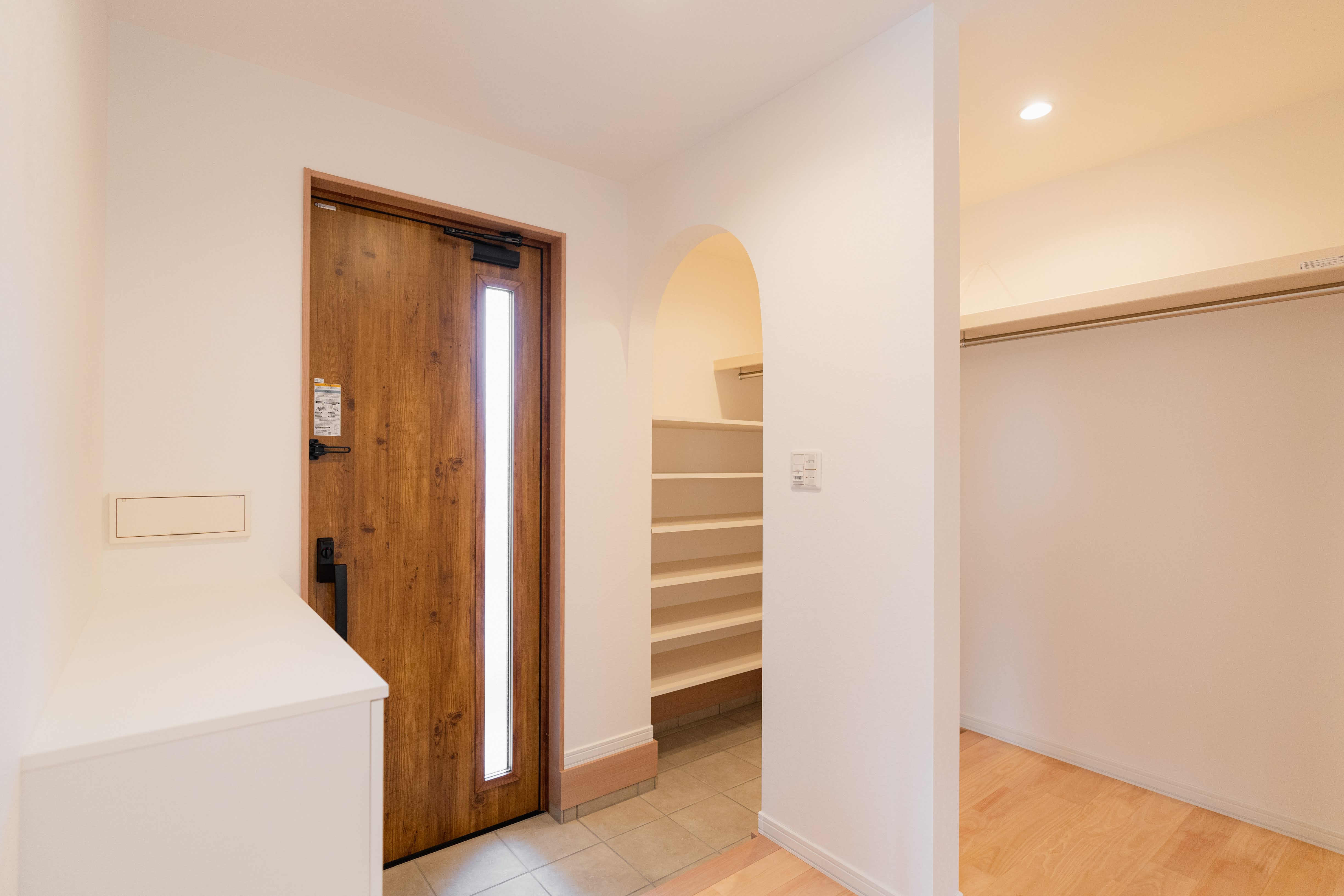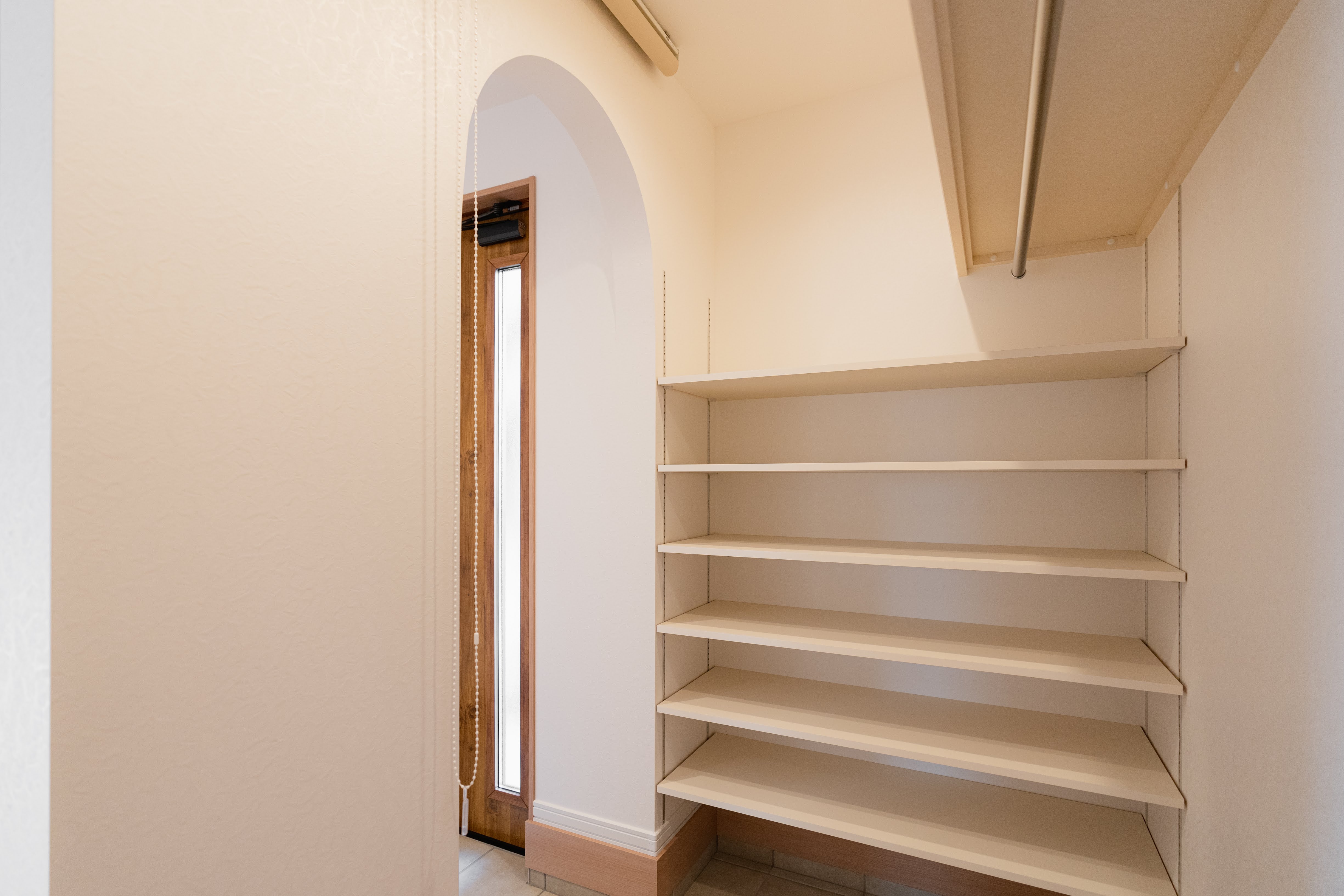 ウォークインクローゼットへの入り口はアーチに