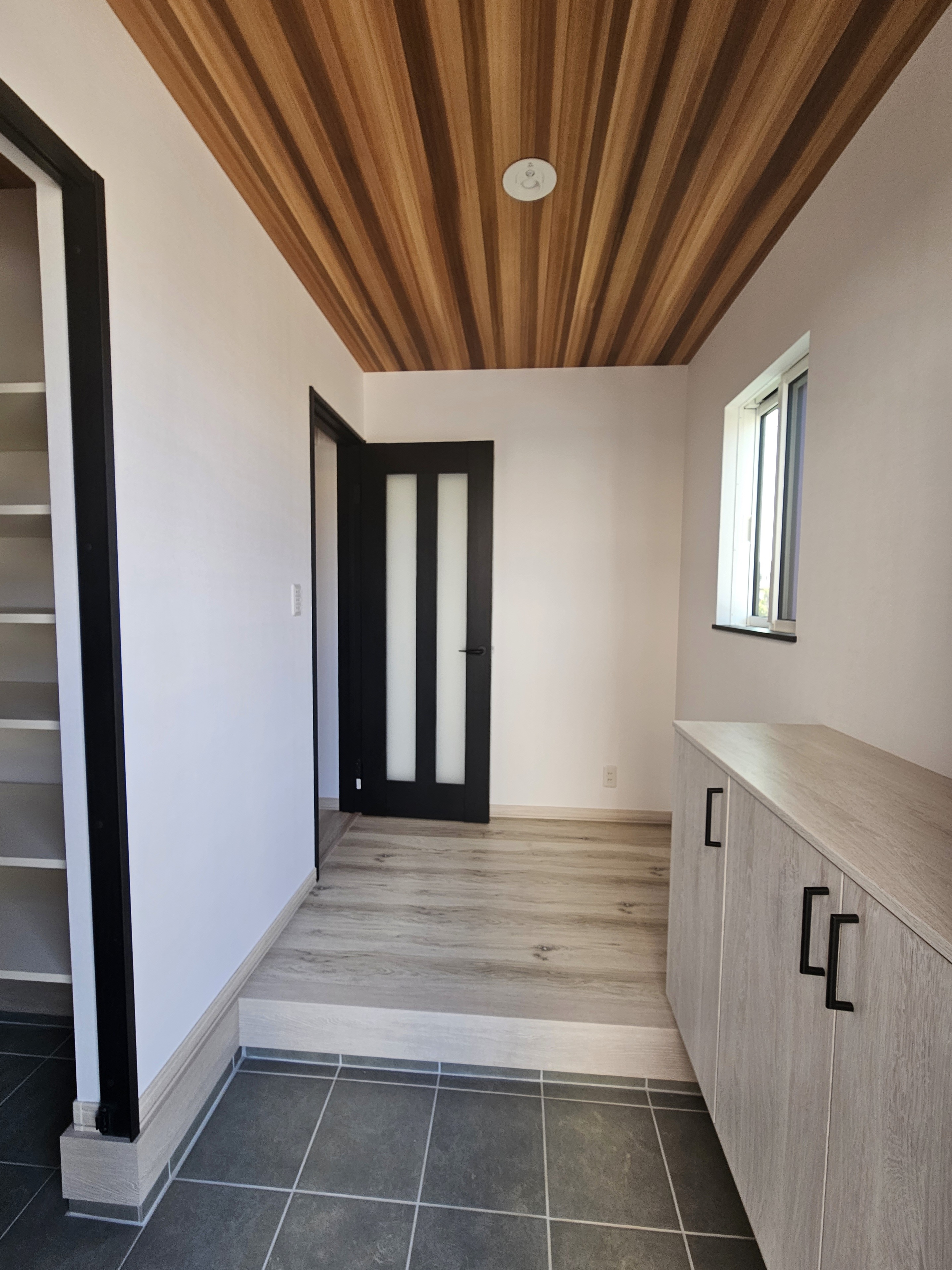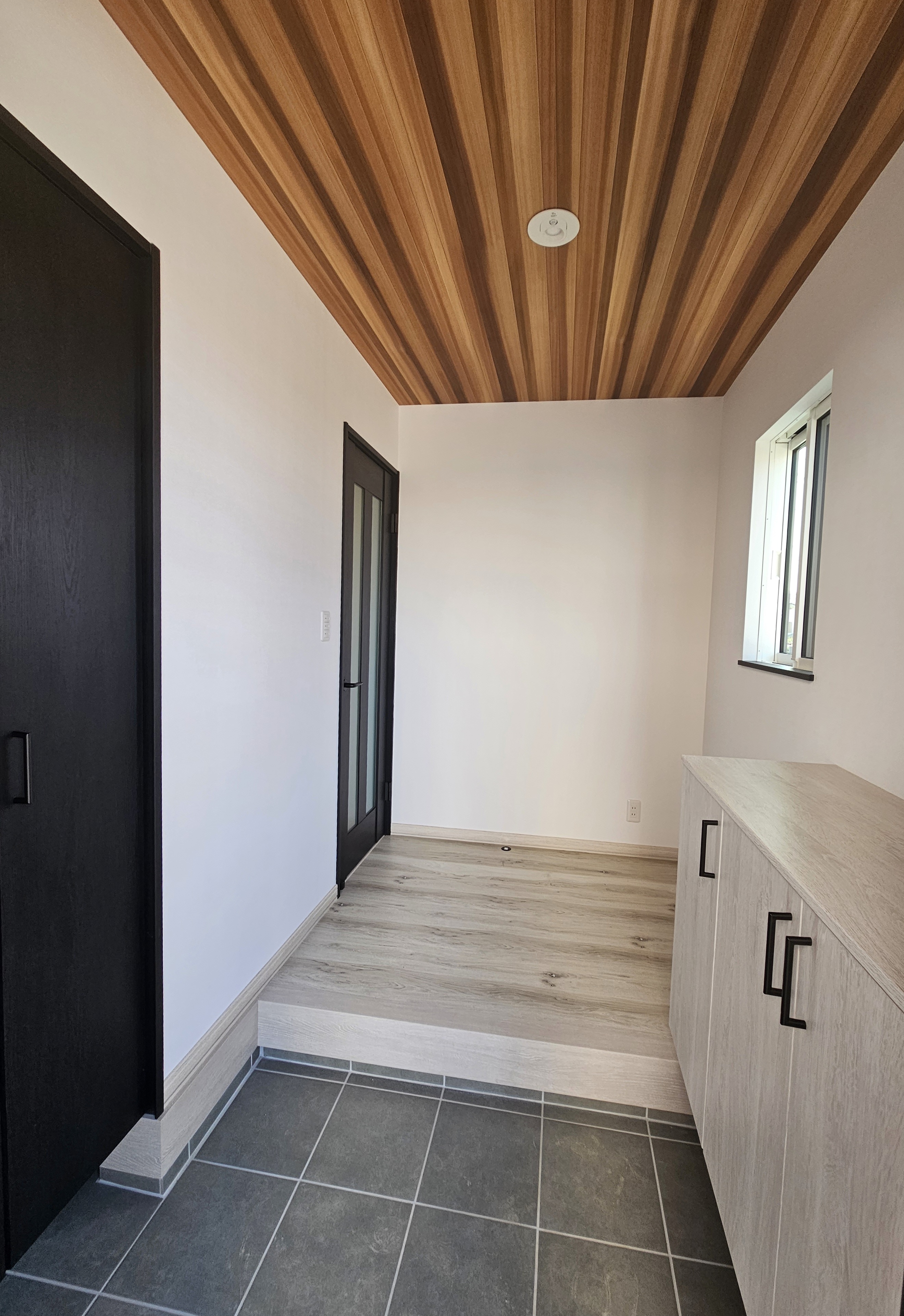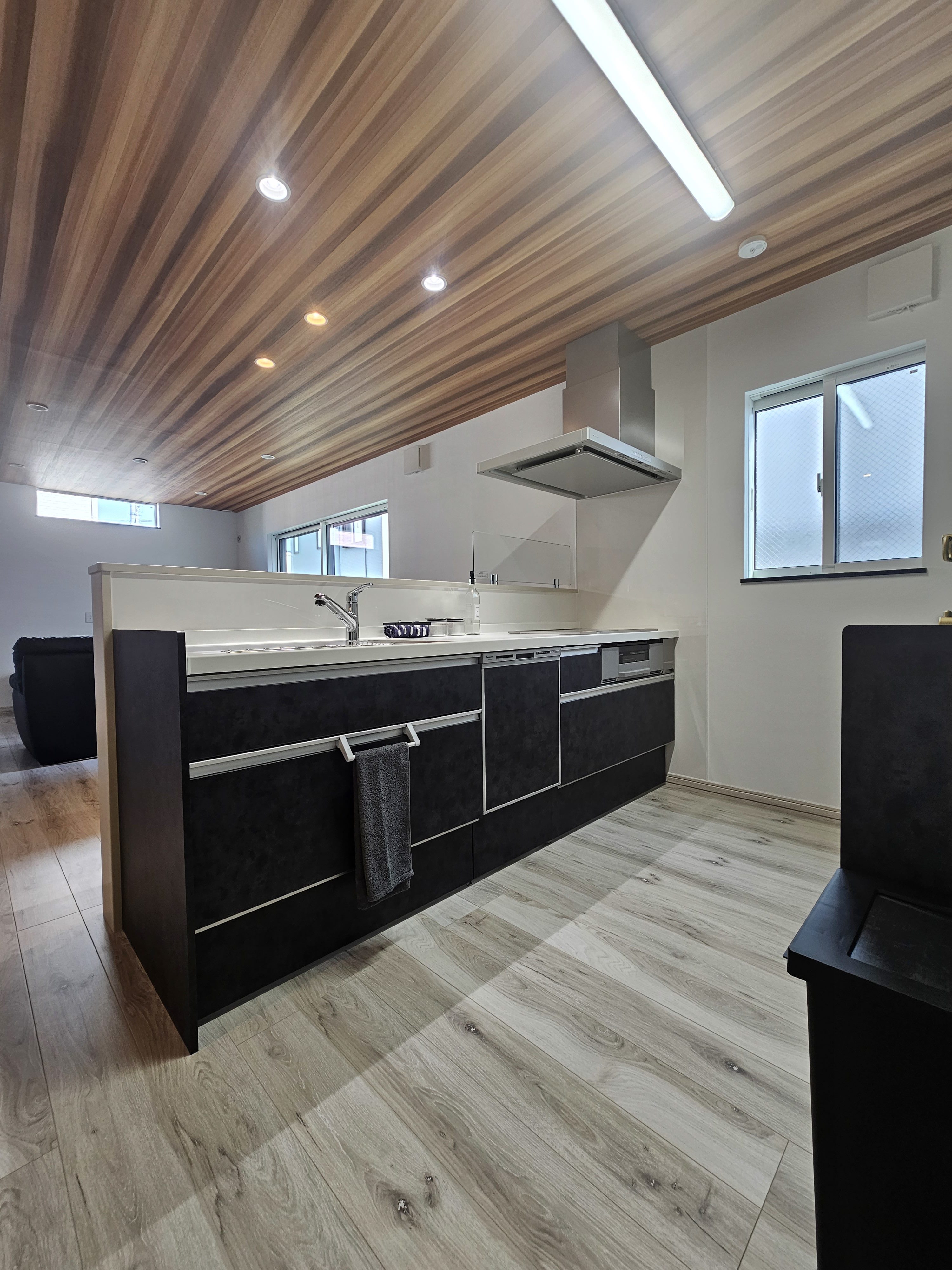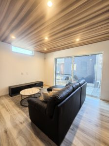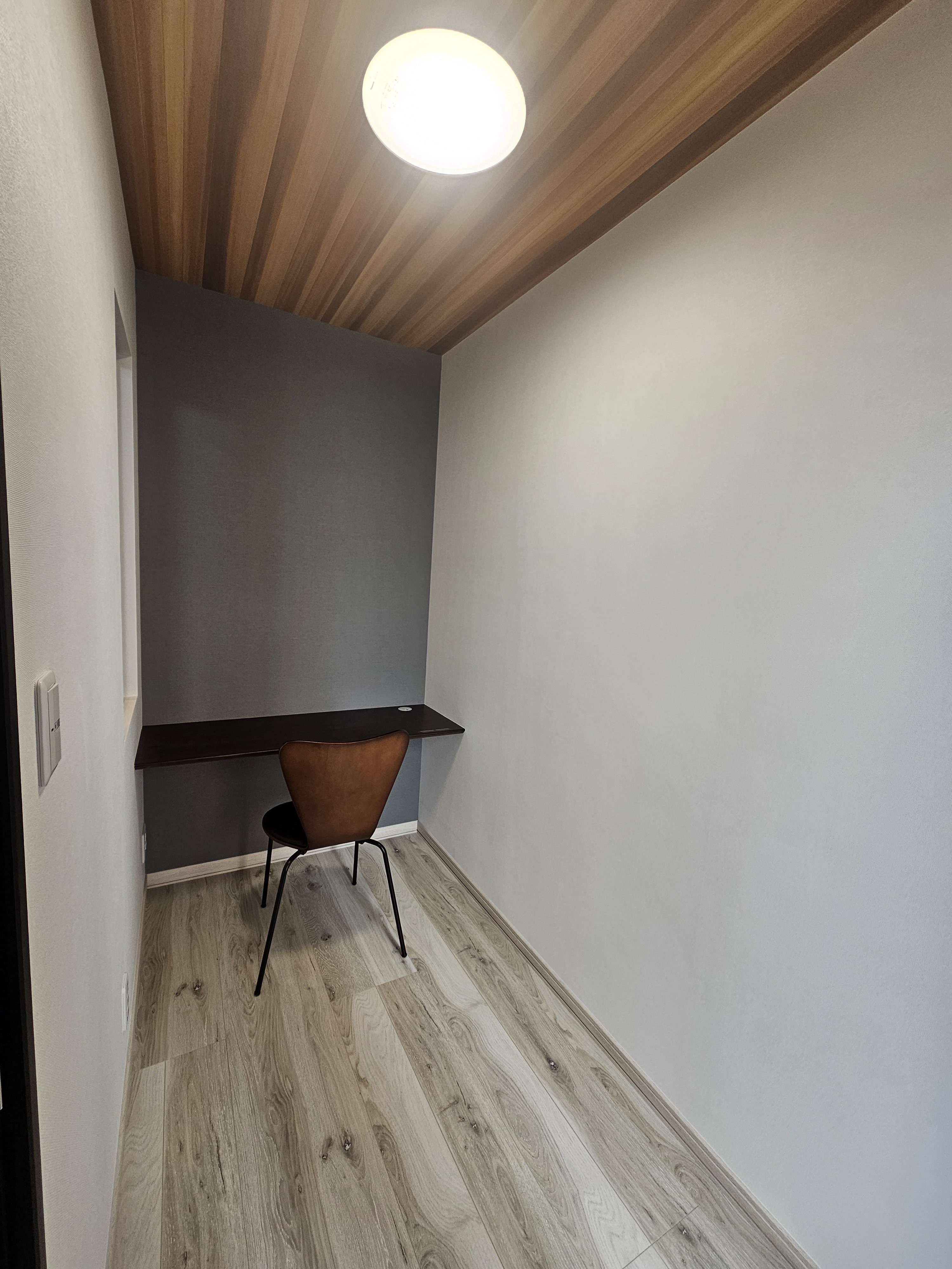 天井の木目調クロスは部屋をさらに広く感じさせます