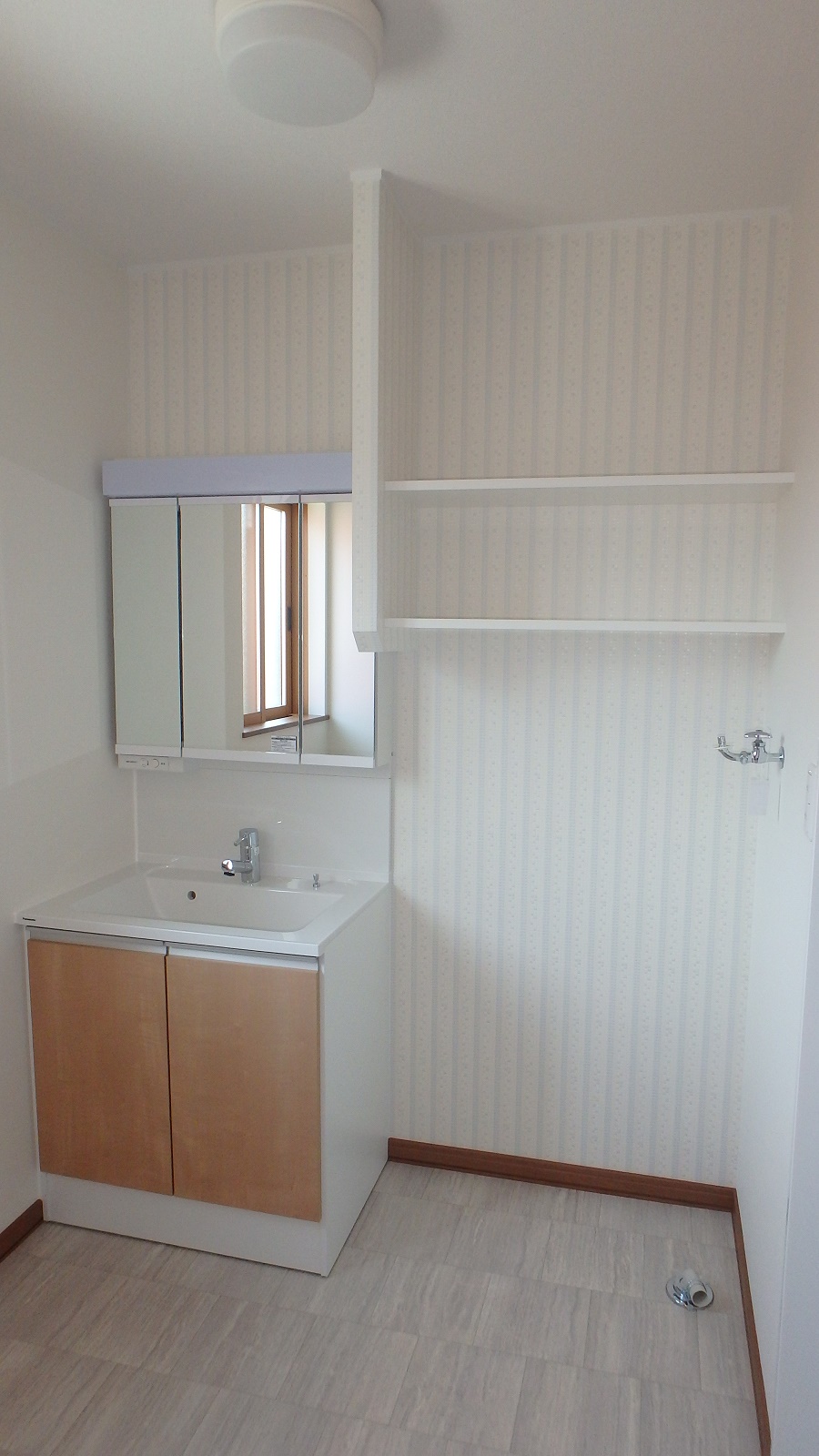 壁はベージュとピンクを貼り分けてかわいらしさUPです。