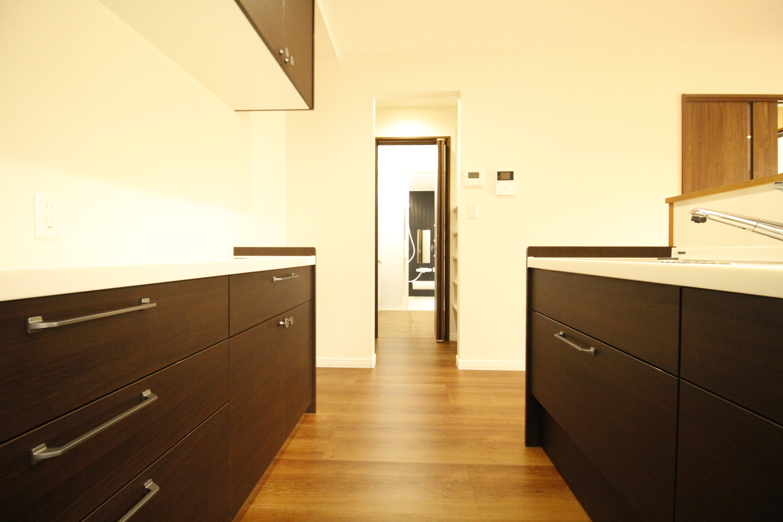 キッチンと脱衣所・バスルームは一直線。