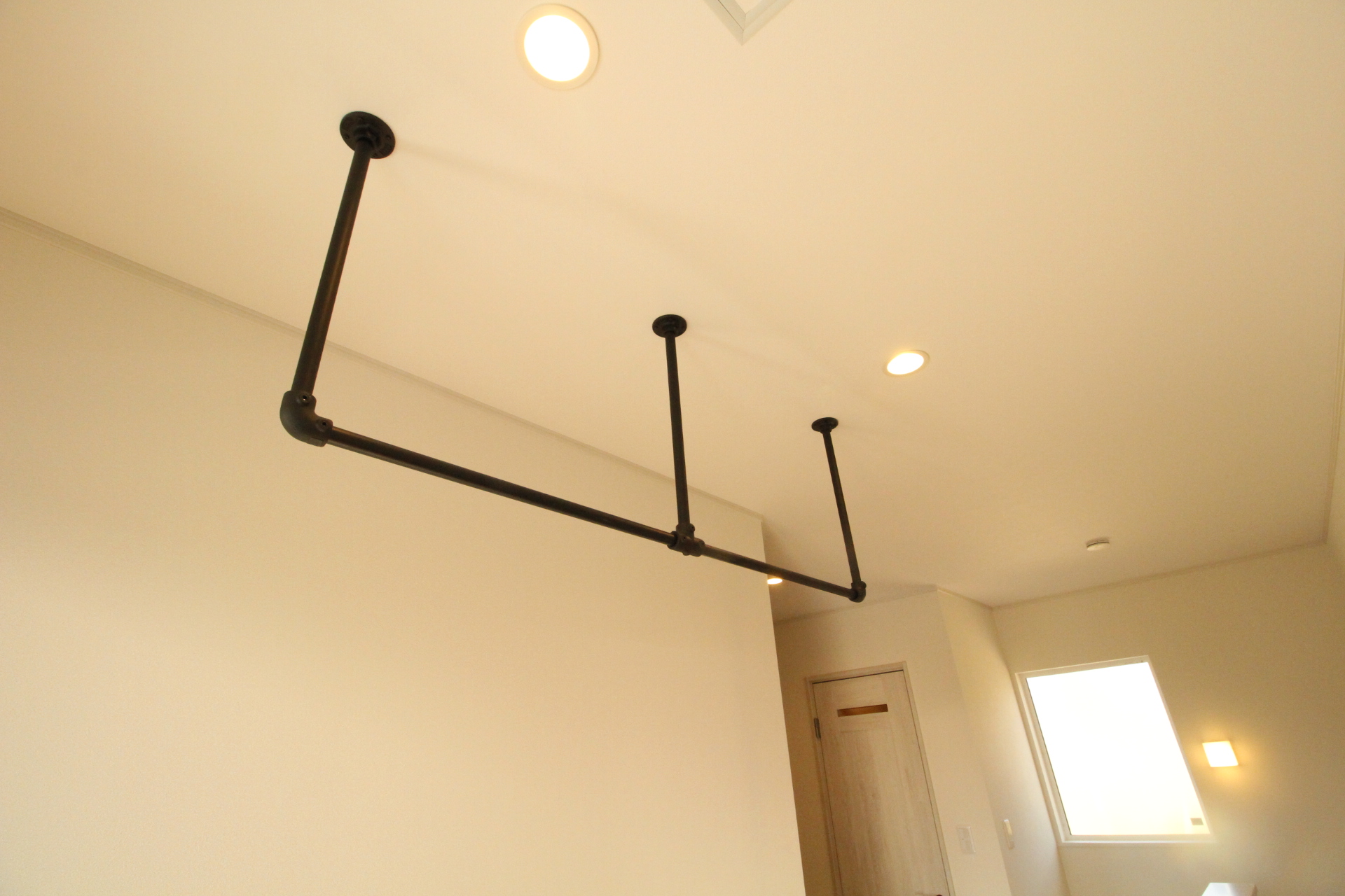 二階ホール室内物干しもアイアンでおしゃれに