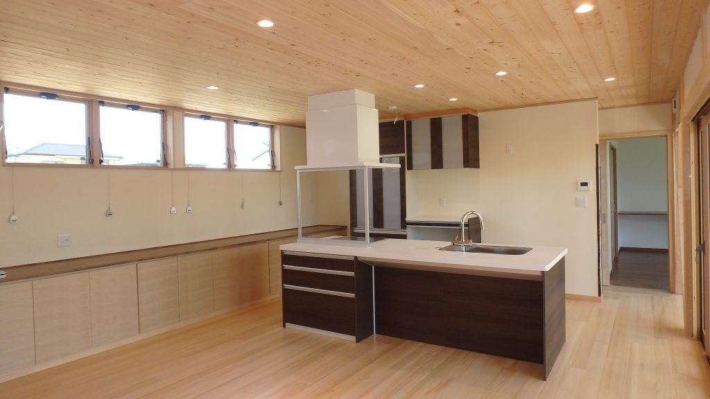 まずダイニングキッチンからご紹介します。天井もご覧ください。