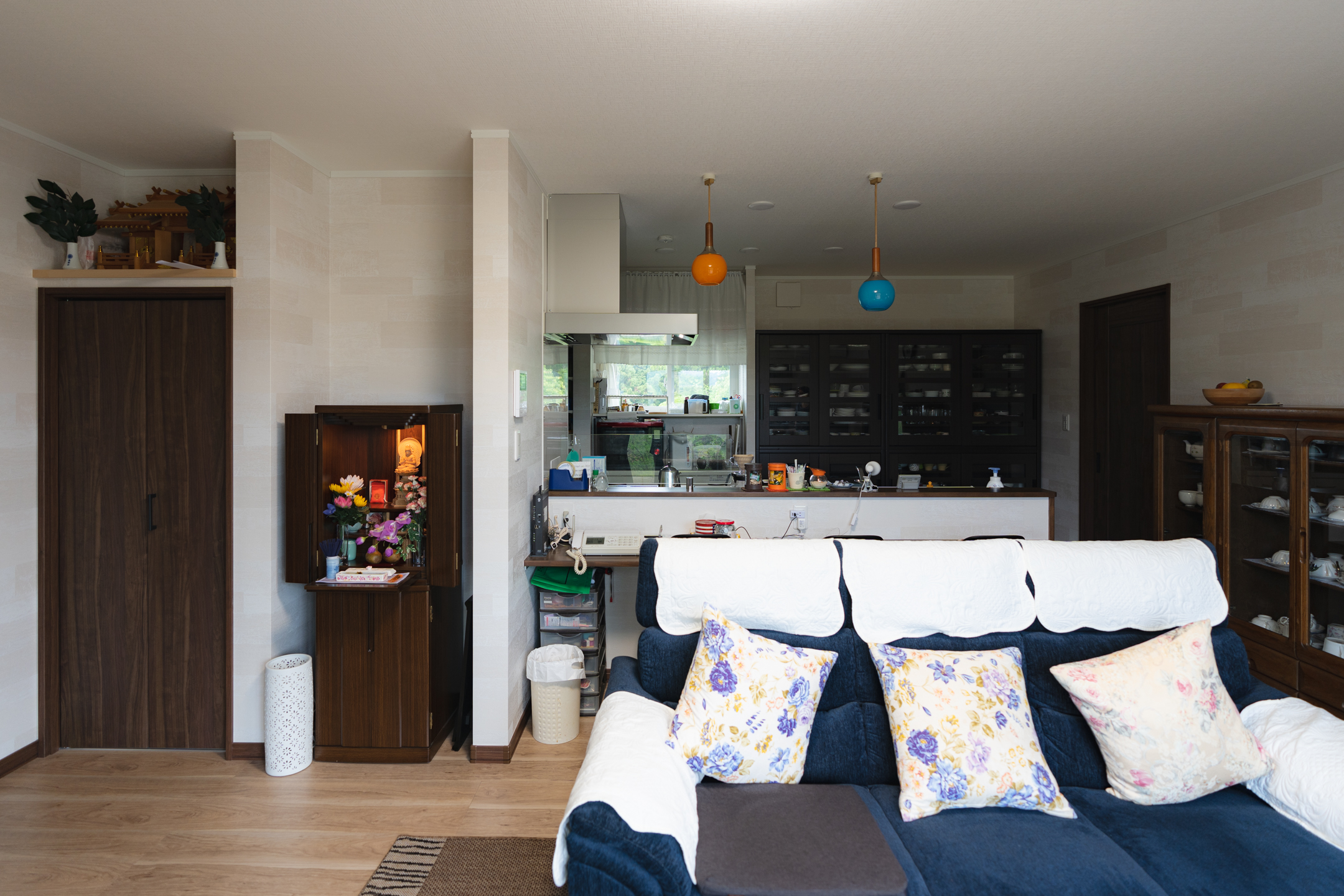 リビングに神棚があるのも珍しいですね。趣味で集めた食器たちも綺麗に食器棚に収納されています。