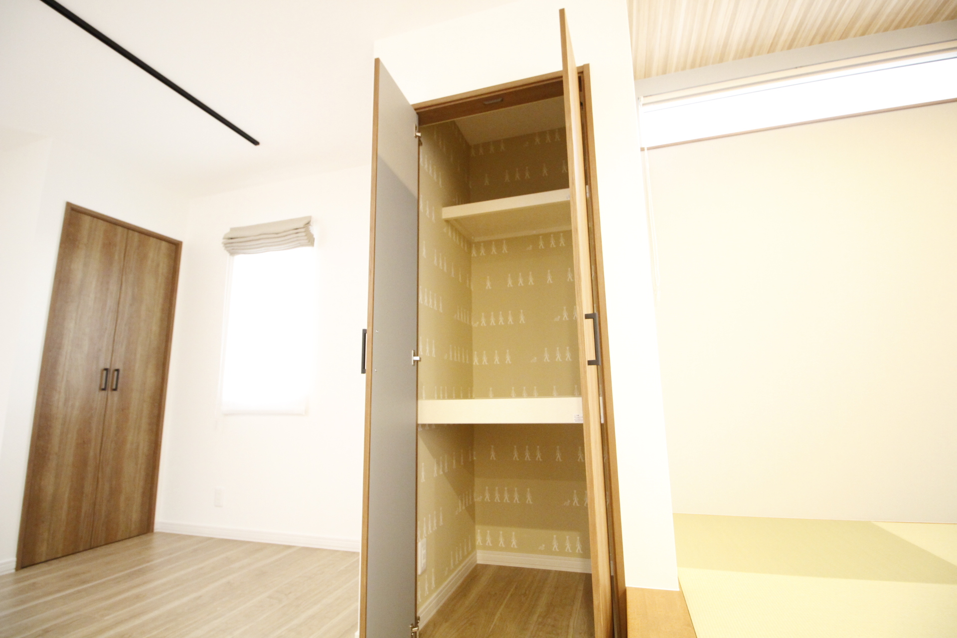 「開放感あふれる和室と遊び心のある収納が魅力の家」